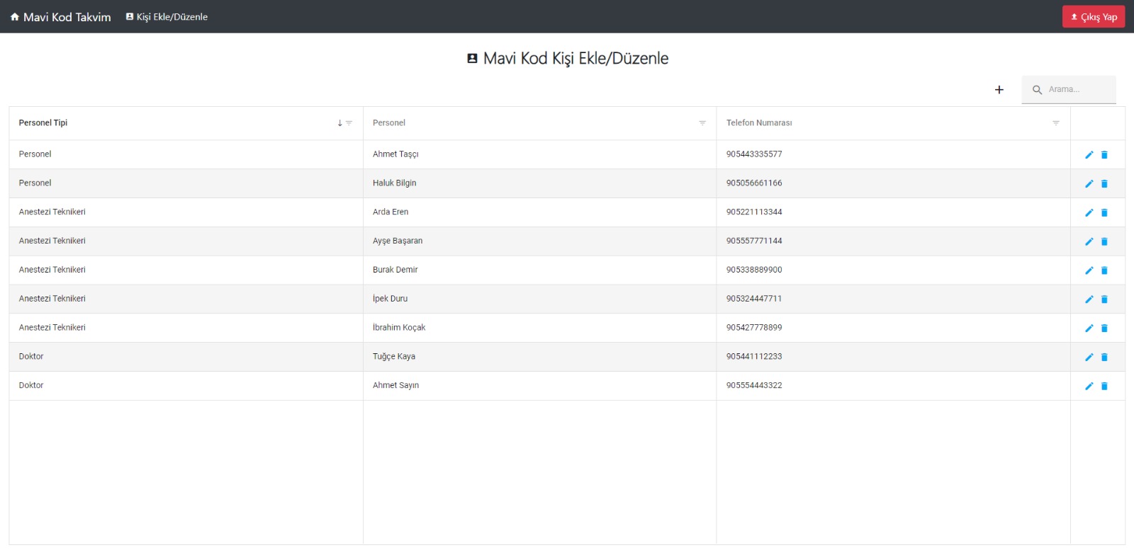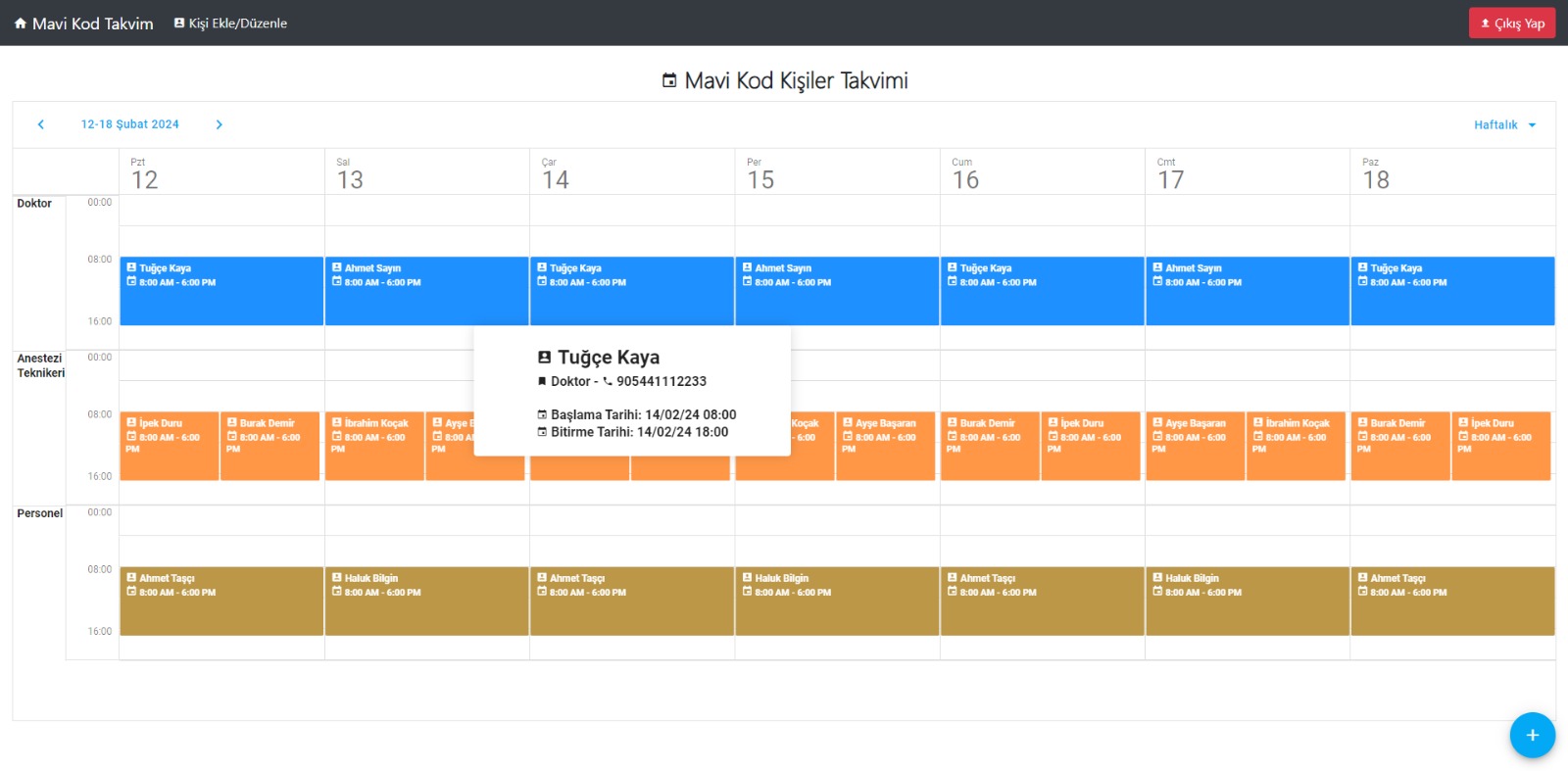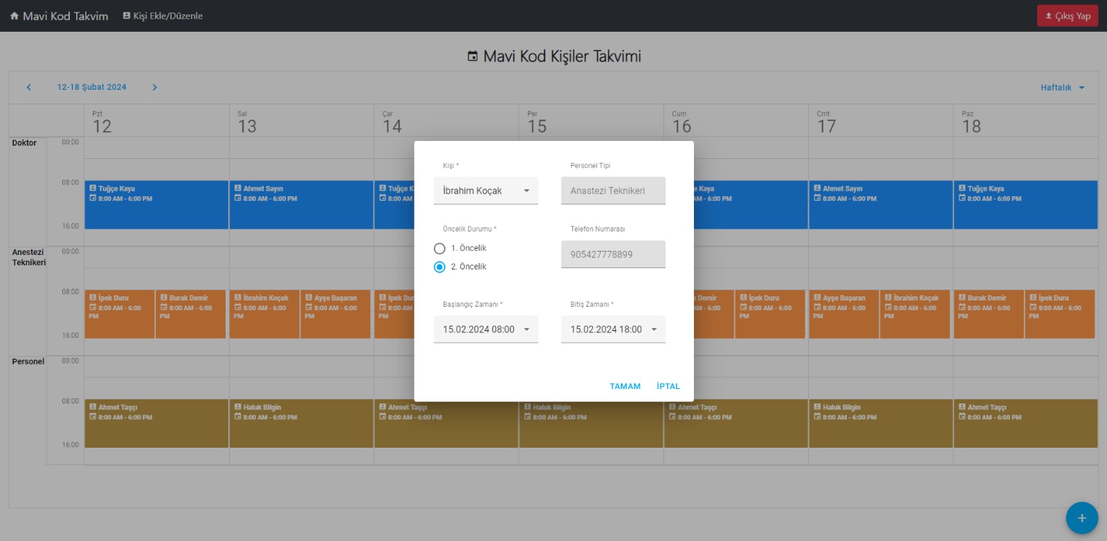 - Nöbet Planlama: Hangi personelin hangi gün ve saatte nöbetçi olacağı ayarlanabilir.