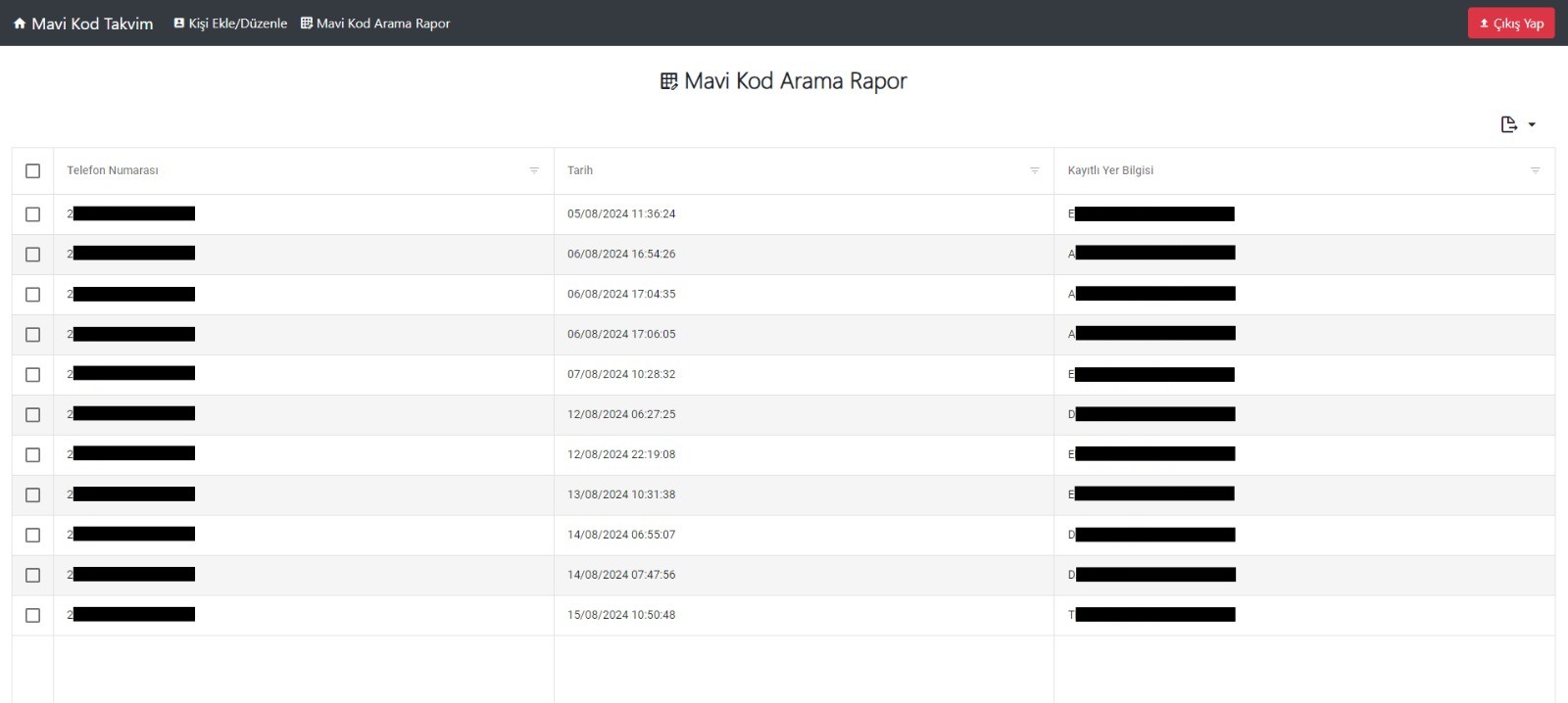 - Tuşlama yapılan telefonun konumu, zamanı ve kod bilgisi kayıt altına alınır.