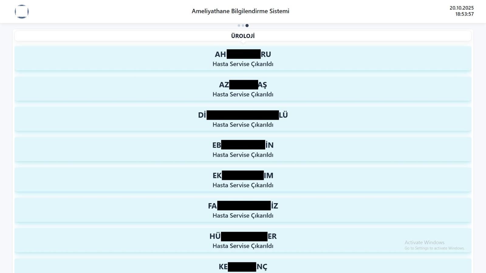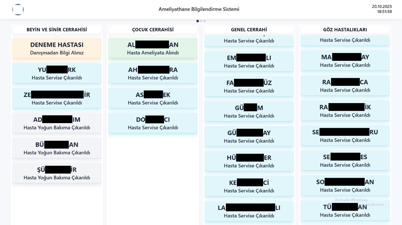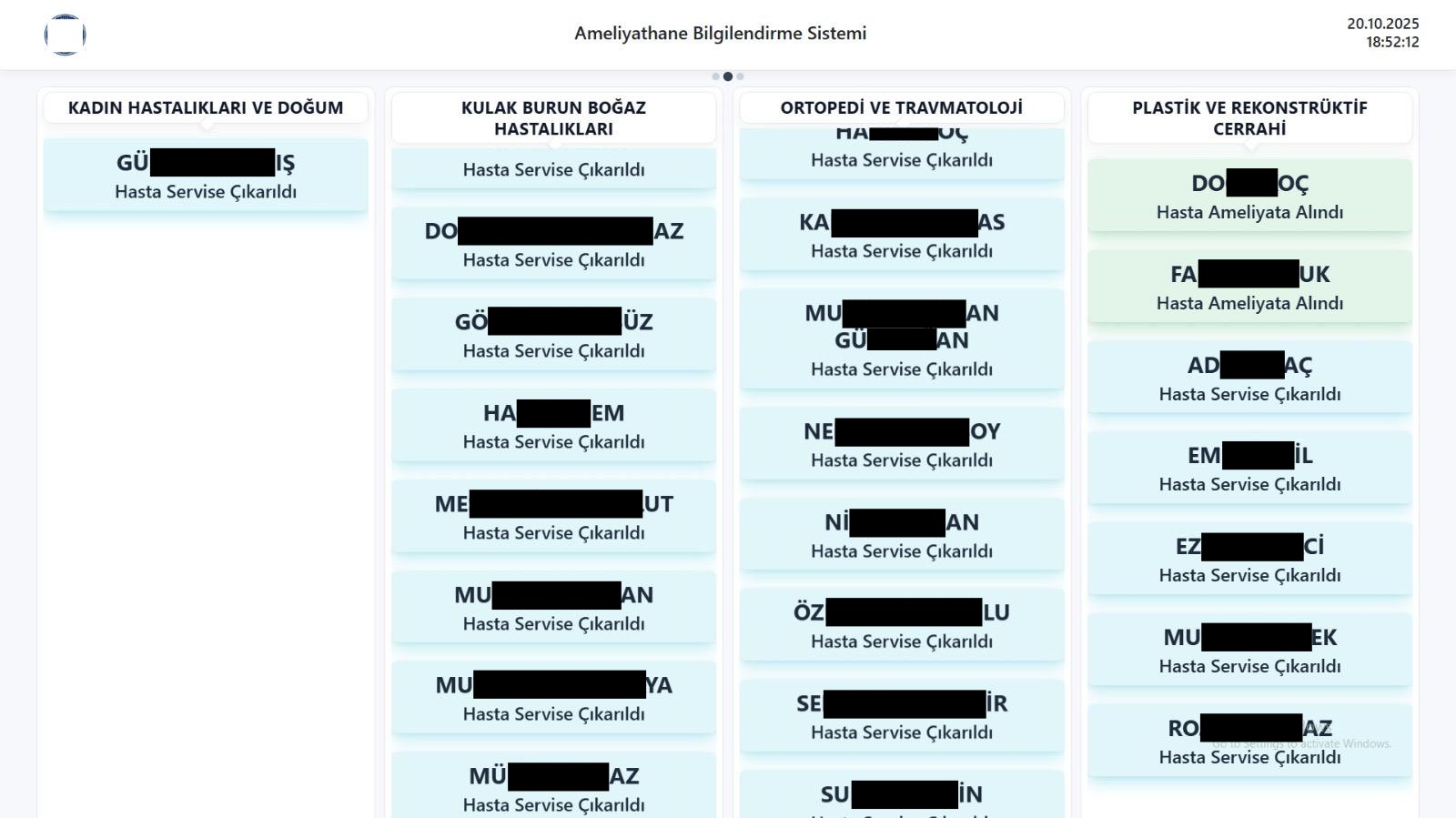 - Ameliyat süreci bekleme alanındaki ekranlarda gösterilir
