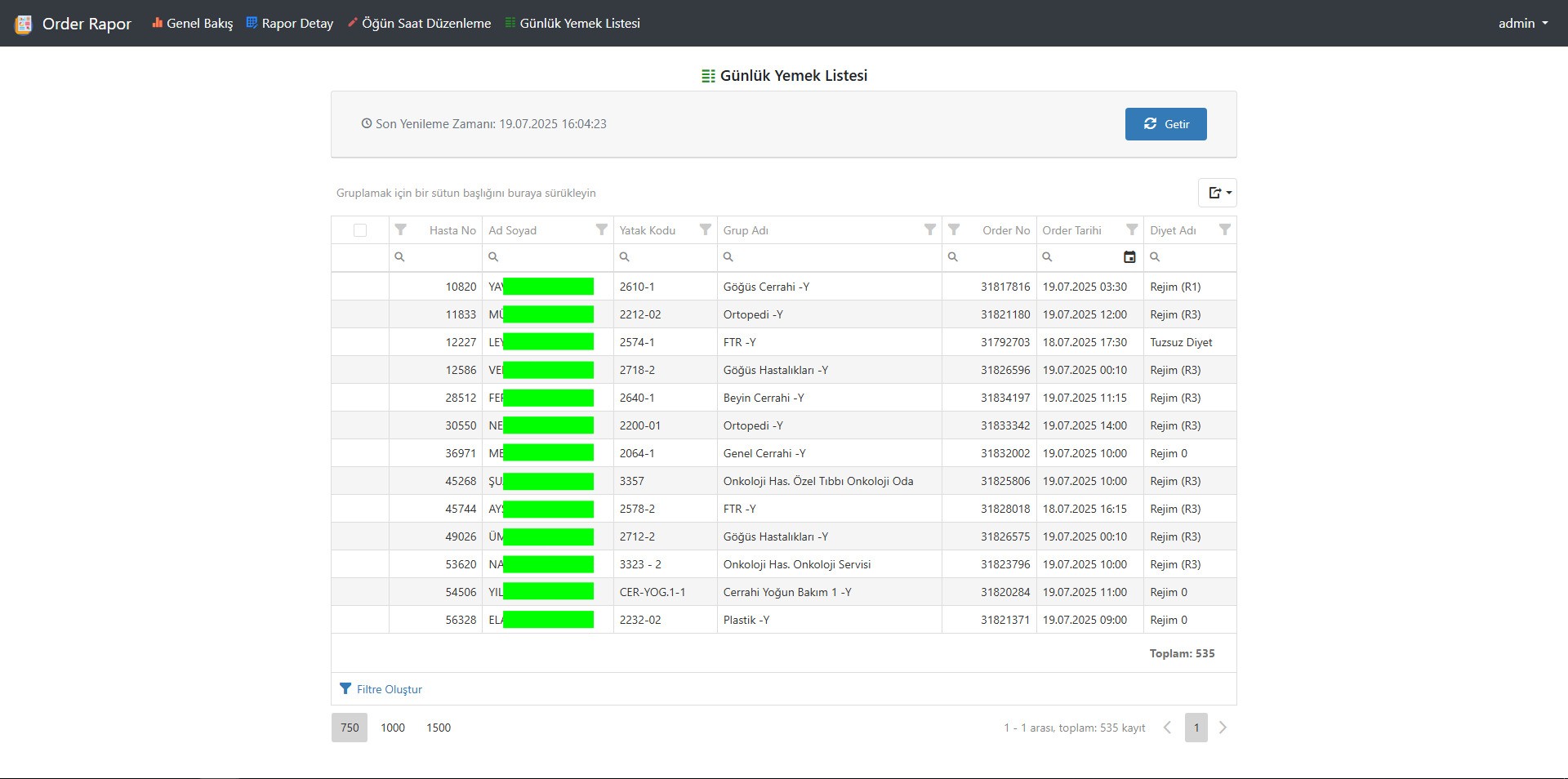 Hastaların yataklı servise girişinde verilen barkodlar sayesinde rejim bilgileri ve yemek saatleri otomatik olarak kayıt altına alınır.