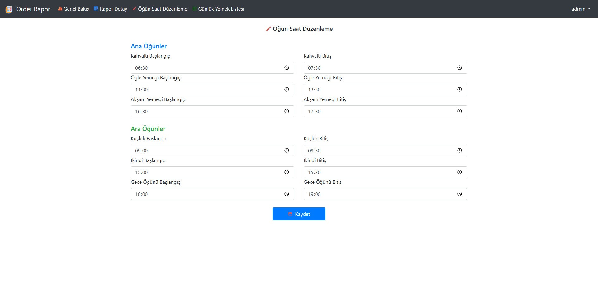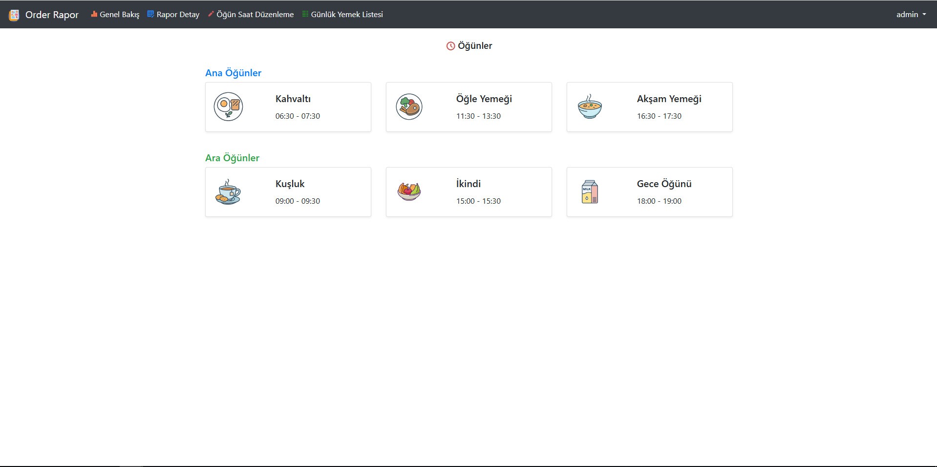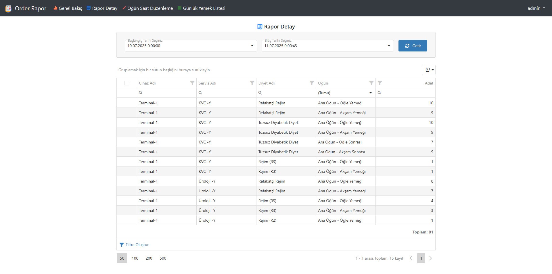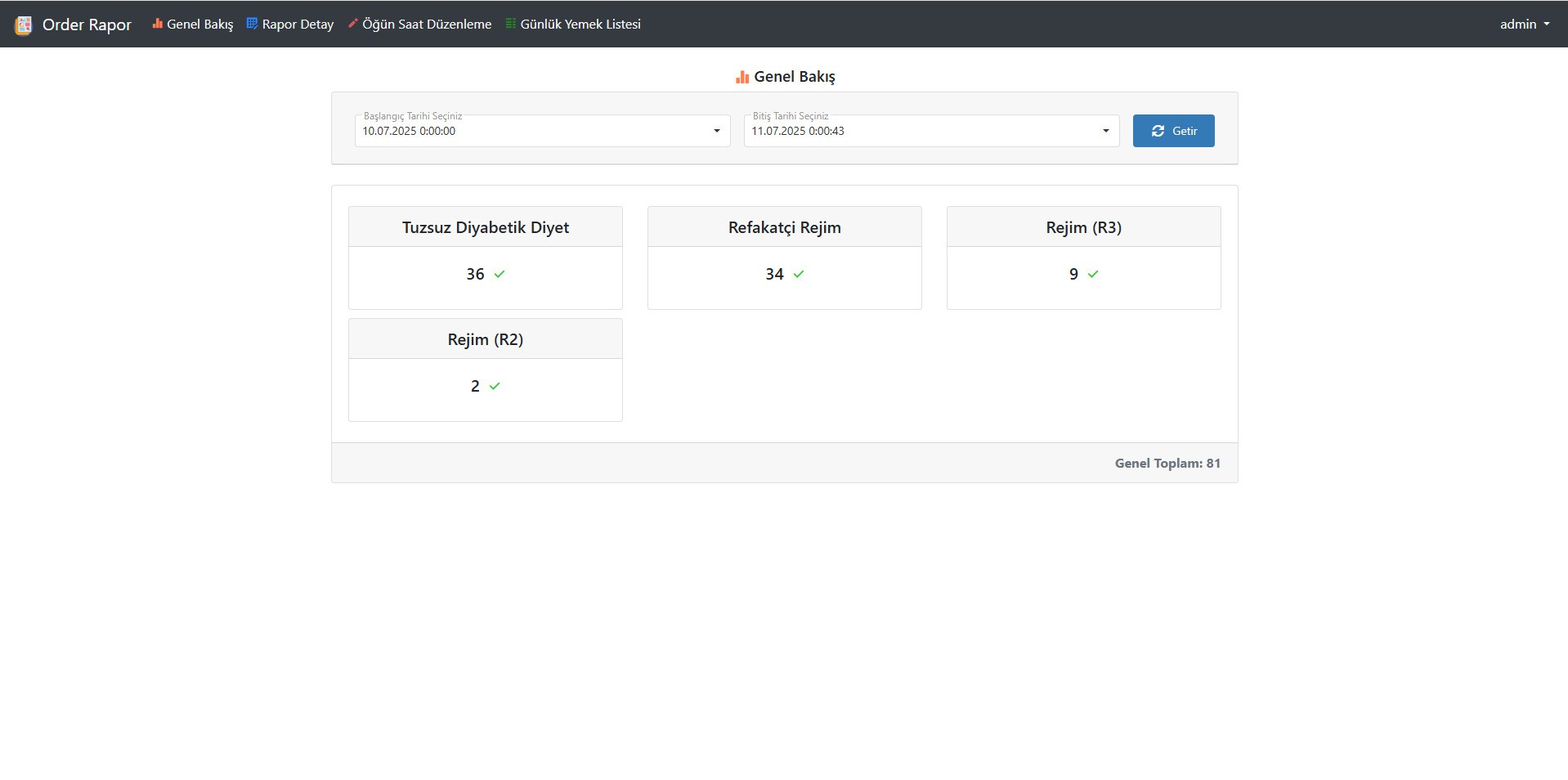 - Yerel ağ üzerinden çalışan web tabanlı raporlama ile istenen tarih aralığında hangi bölümde hangi rejimden kaç adet yemek verildiği görülebilir.
